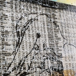 Pastelkreide, Siebdruck und Farbstift auf drei Ebenen.