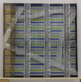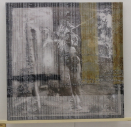 Polaroid blow up, präparierte Gaze, Serigrafie, Farbe auf 3 Ebenen.